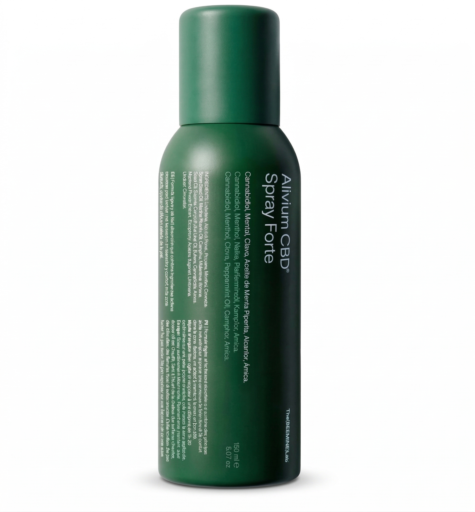 «Lleva tu recuperación al siguiente nivel con el Alivium CBD Spray Forte. Este spray de alta intensidad combina una potente concentración de CBD con extractos botánicos de Árnica y Harpagofito, conocidos por sus propiedades antiinflamatorias. Gracias a su efecto frío-calor inmediato (gracias al mentol y el alcanfor), ayuda a destensar los músculos tras el ejercicio o un largo día de actividad. Es el compañero indispensable en tu bolsa de deporte o botiquín para combatir las molestias localizadas de forma natural y eficaz.»